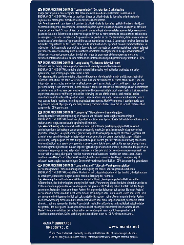 Do you want to last longer and have better control over your climax? Manix Endurance Time Control are latex condoms designed for those who want to prolong pleasure without compromising on sensation. With a delaying gel, they help you prolong the moment – in a simple and discreet way.