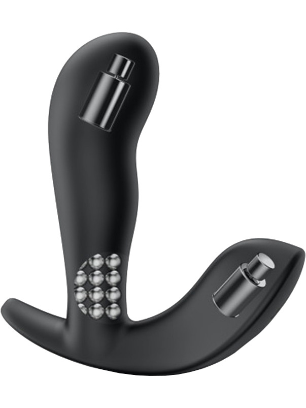 Enjoy a perfect stimulation as the two vibrating motors stimulate your most sensitive points while the rotating beads massage your inner walls. With the wireless remote, you or your partner can conveniently control its functions. Choose between 10 vibration-modes and 5 modes for the rotating beads. The remote control has a range of 10 meters, which enables exciting partner-play.