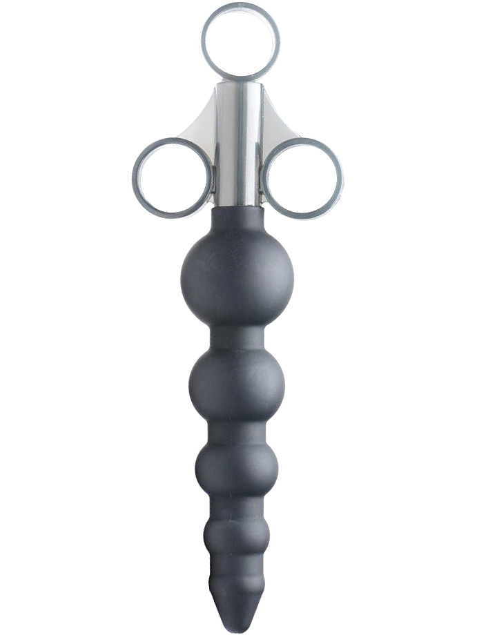 Beaded Shooter is a lubricant applicator that combines precise application with stimulating shape and pleasure. The four balls gradually increase in size to prepare you in more ways than one. The plunger is designed for ease of use. With the comfortable finger loops, you can fill the applicator with any liquid you want (not silicone-based lubricant) and apply with a simple push.