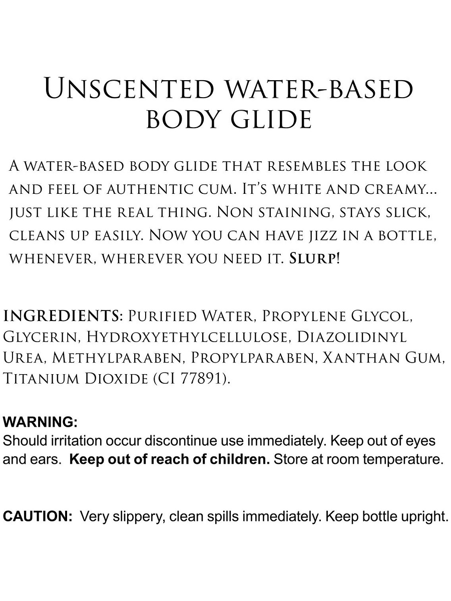 Do you love the texture and look of semen? Then Jizz is the perfect choice! Jizz has a water-based formula with a whitish and creamy consistency that is completely unscented so you can enjoy the look and feel without any lingering scents.