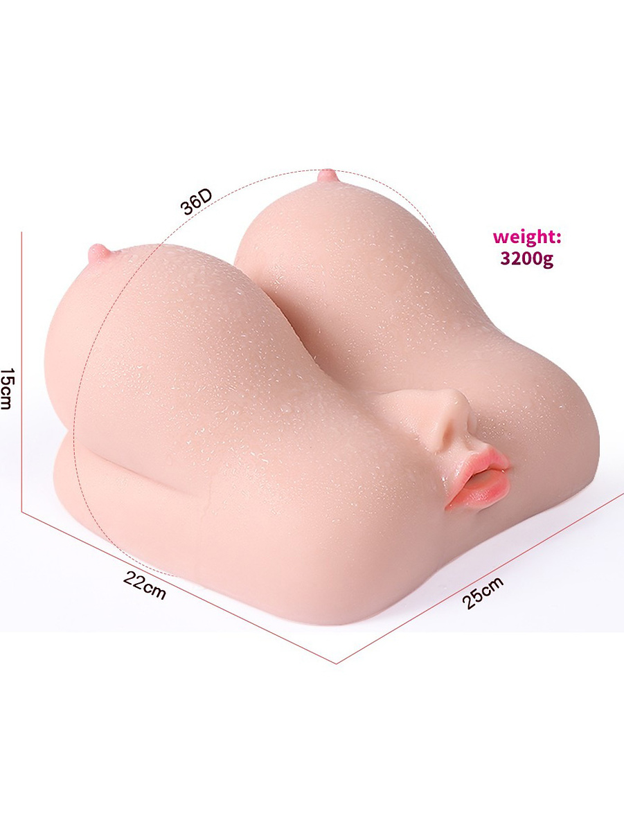With generous dimensions of 25 x 22 x 15 cm and a weight of 3.2 kg, Salome provides a stable resistance for hands-free use and a heavy, authentic grip. The plump torso and large breasts offer both visual and physical stimulation for those who want to take control – or let go.