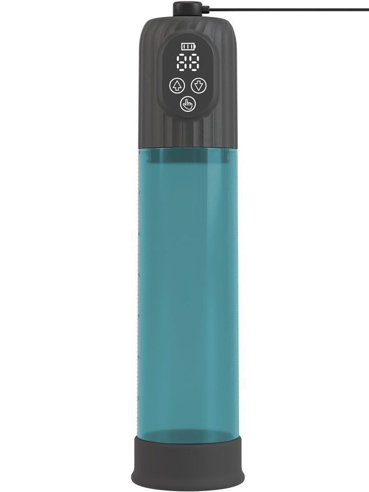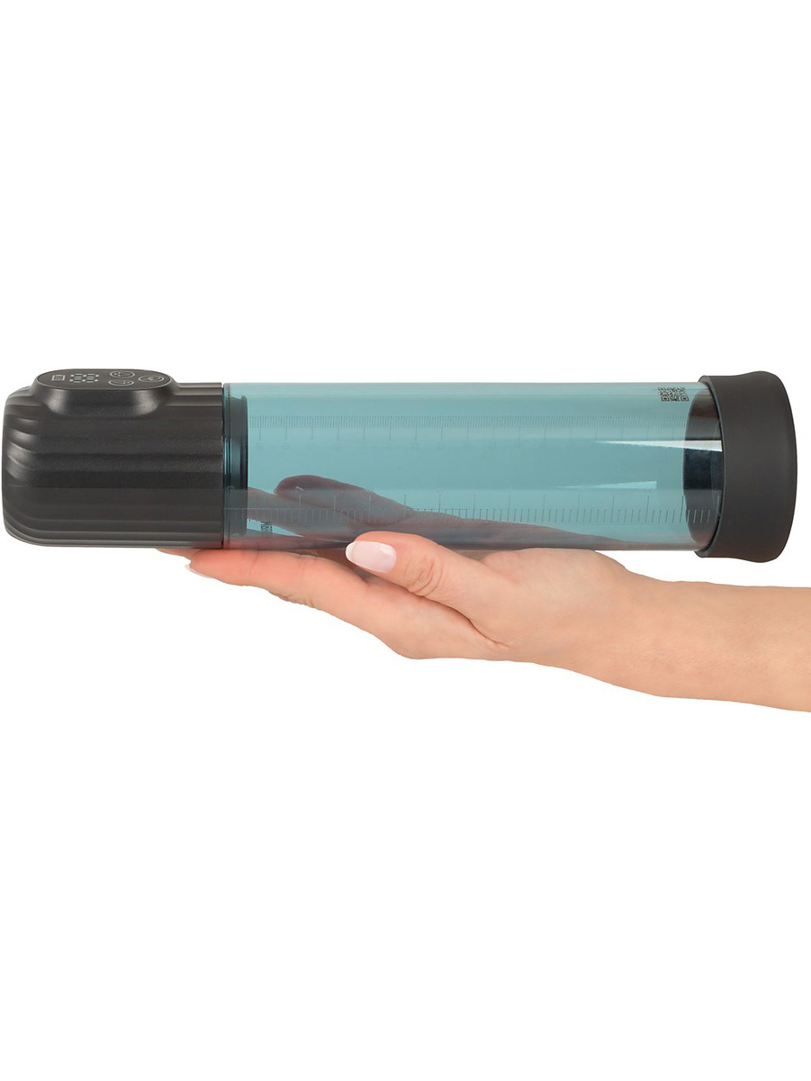 The suction vacuum is generated quickly and easily in the blue-transparent cylinder with measuring scale (cm and inches) that allows you to track your results. The penis can swell to its maximum size and shape. The suction-modes and battery-charge level can be checked on the LED-display. Two silky-smooth and soft silicone sleeves with different diameters (3.6 cm & 2.5 cm) are included for a perfect seal between the cylinder and the body.