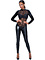 Long-sleeved jumpsuit from Noir in a sexy wetlook design. At the front is a thin and transparent powernet with delicious tiger patterns in velvet. The outfit is stretchy and sits comfortably over your feminine forms.