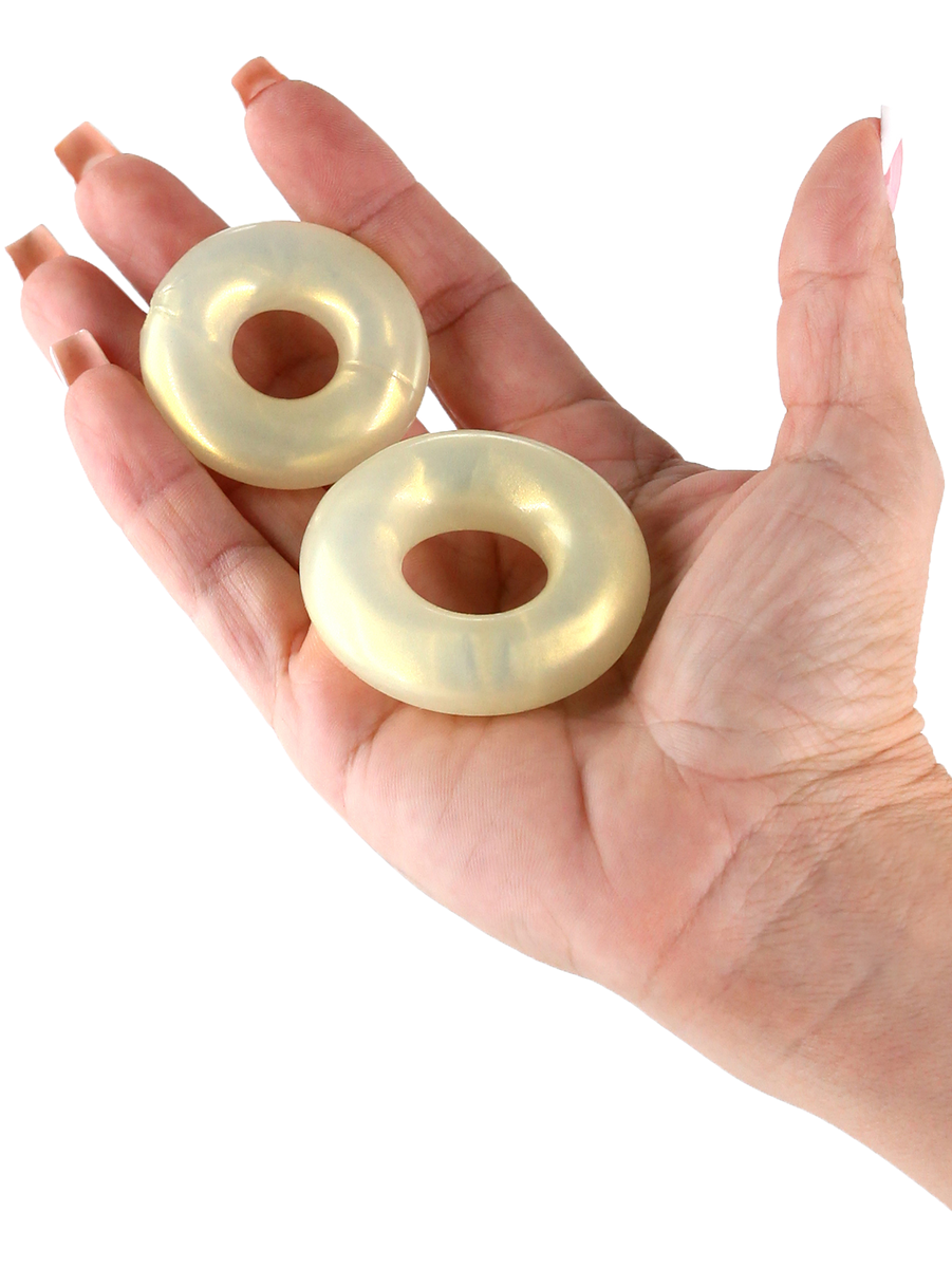 The two rings in different sizes allow you to experiment with placement – for example, one around the base of the penis and one around both the penis and scrotum. Their glossy finish makes them not only functional but also visually appealing. Feel free to combine with a water-based lubricant for optimal comfort and experience.