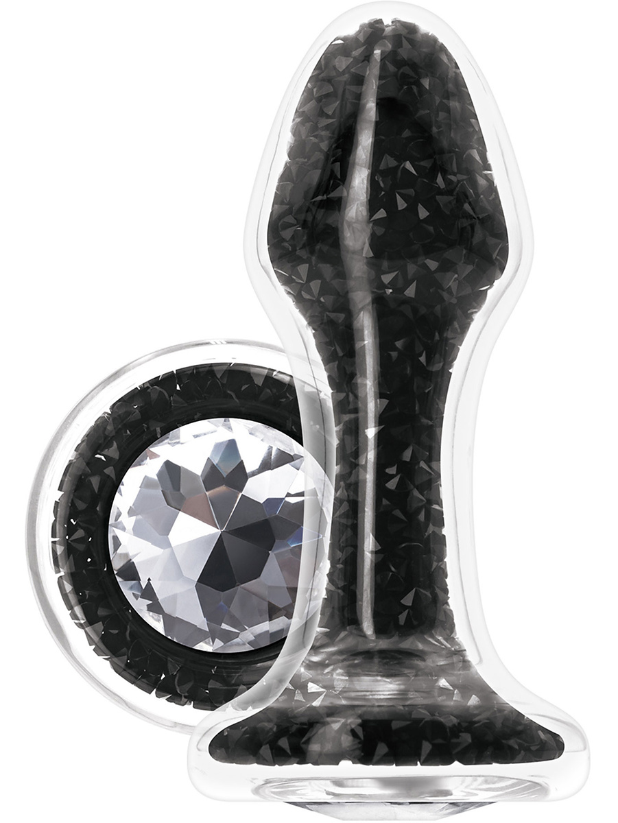 Inside the transparent glass are beautiful black crystals that glitter luxuriously. Apply lubricant to the plug and gently insert it until it sits comfortably in place. The wide base prevents the plug from slipping in too far. In the base there is also a transparent and shiny stone that completes the beautiful visual experience.