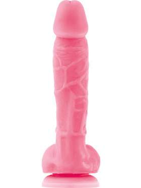 An incredibly realistic and stimulating dildo in a playful pink color. Turn off the lights and see how its fine shapes light up in the dark.