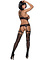 With a seductive design, your partner will have a hard time tearing their gaze from your body. The socks and top are joined together with the help of straps, which leaves your most intimate parts naked. Along the thighs there are beautiful motifs that match the upper part. The lace-like details of the upper on the front emphasize your waist while the crossed shoulder straps complete the design.
