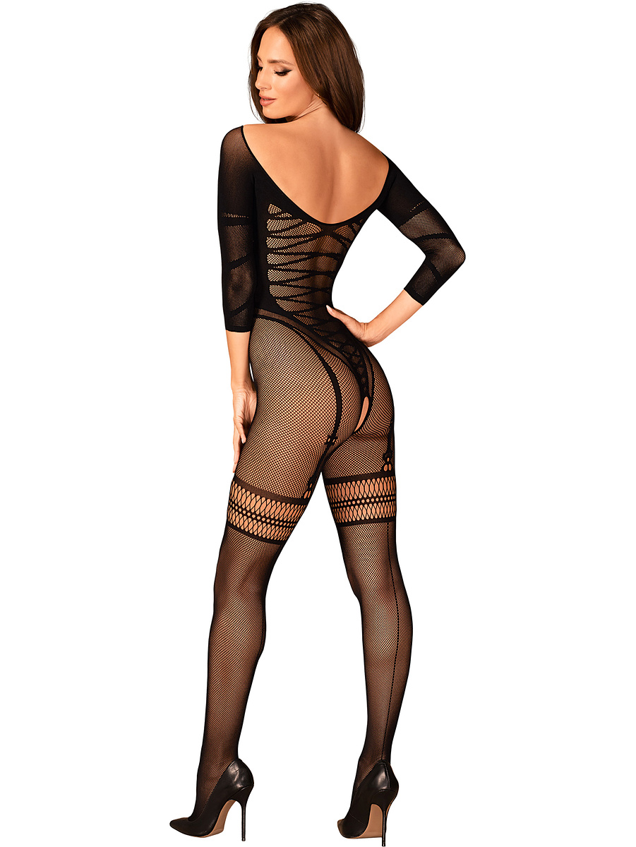 This is a modern and tempting bodystocking that catches the eye and makes the temperature rise. Sensual patterns on the front and back that imitate a corset give a sexy look and emphasize the figure.