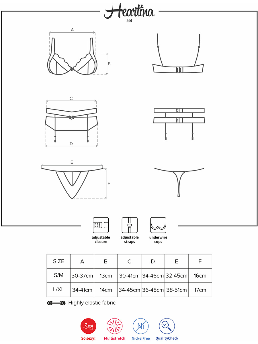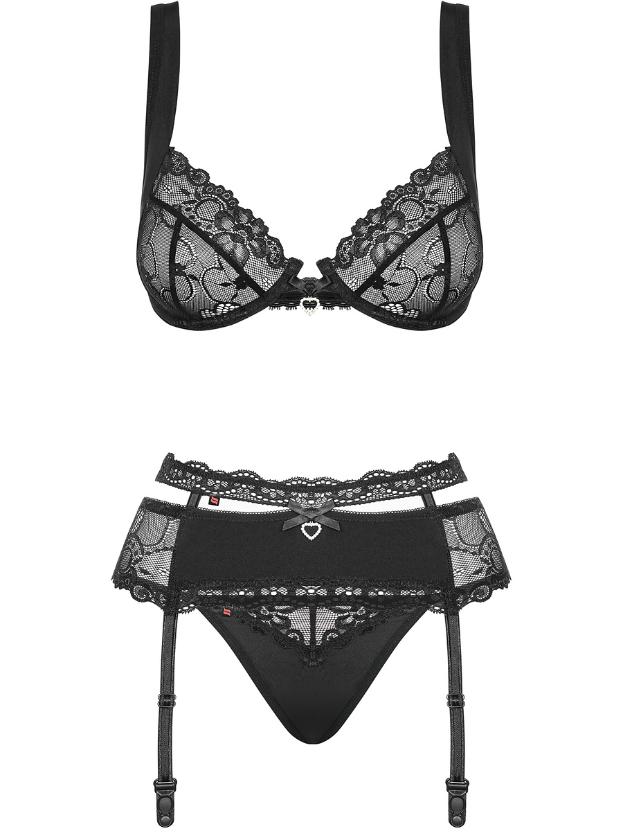 Obsessive Heartina, Underwire Bra, Garter Belt, Thong, black
