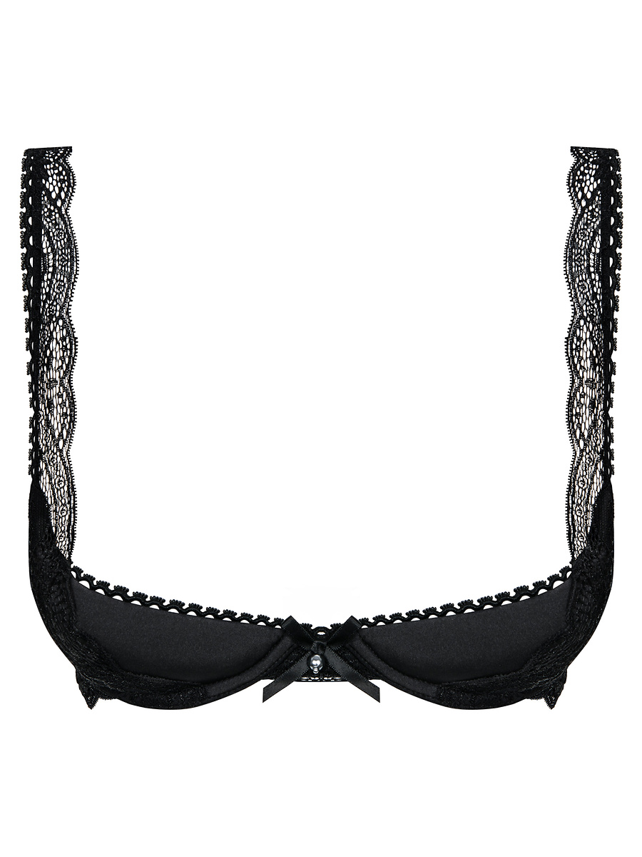 Feel the perfect lace against your skin and emphasize your feminine shapes. The half-cut design is perfect for bold temptations and features a cute bow between the breasts.