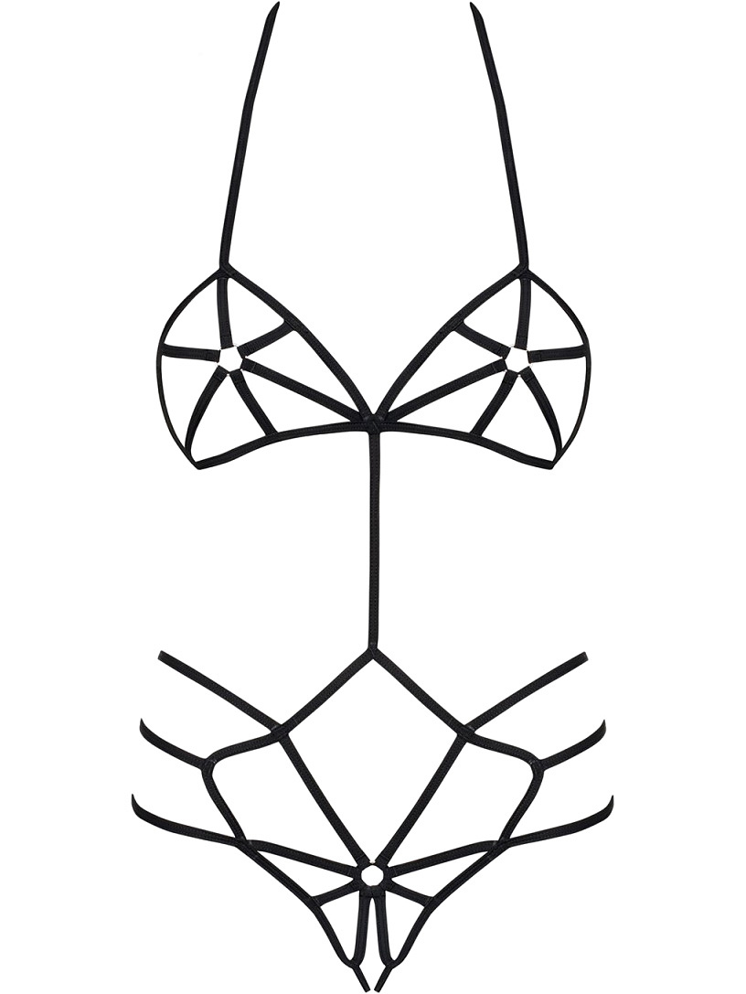 This is an incredibly sexy Teddy in soft straps that shows a lot of skin while the crotchless design exposes your most intimate parts for erotic moments. Even the nipples are exposed when placed in the nickel-free metal rings.