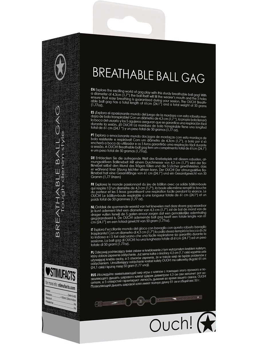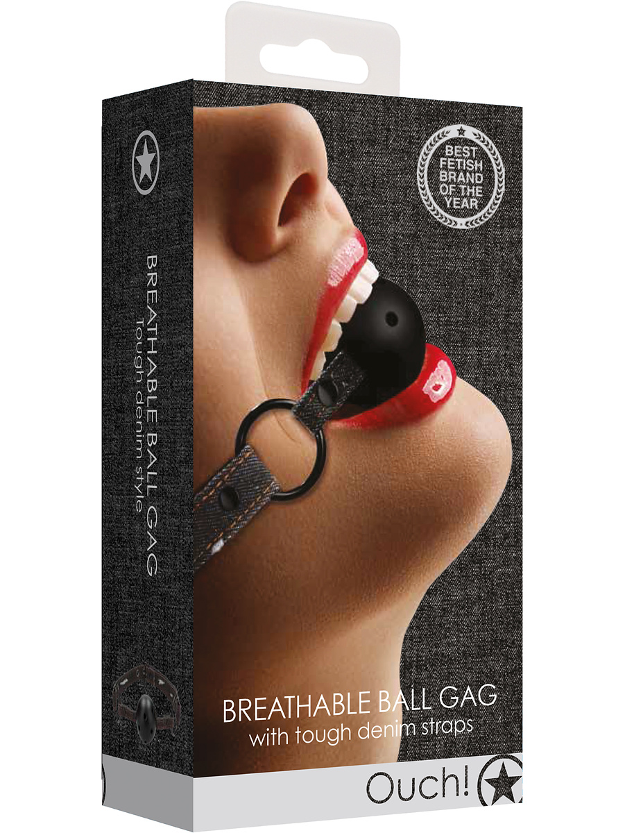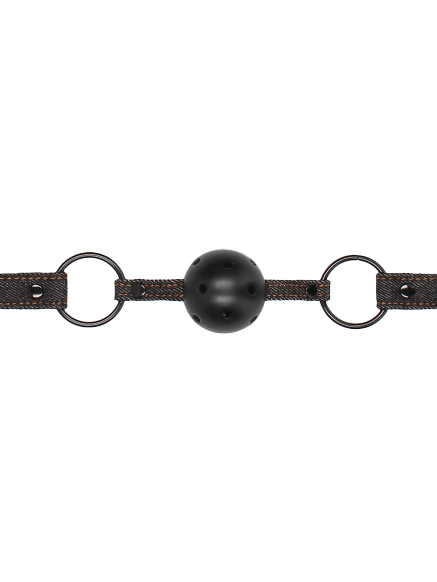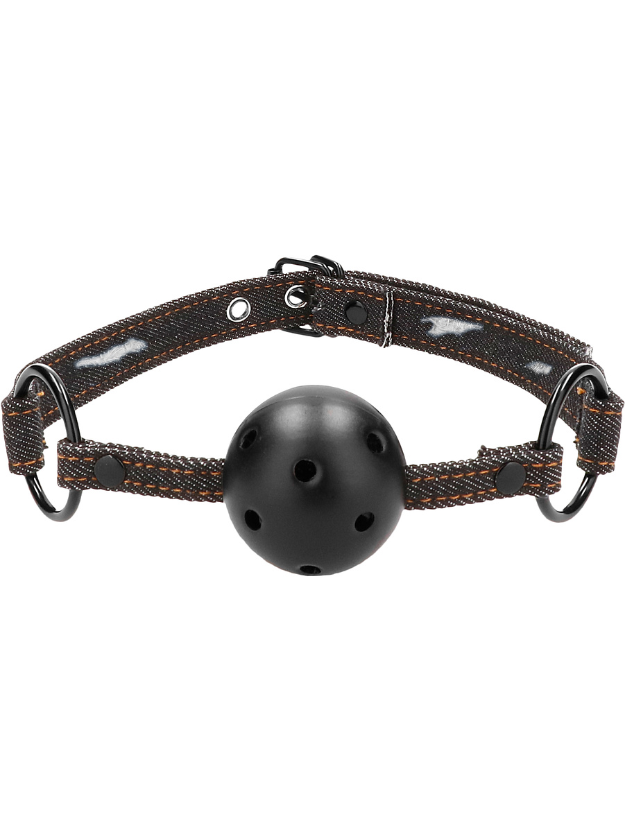 Breathable Ball Gag with Tough Denim Straps - Cool design that silences your partner!