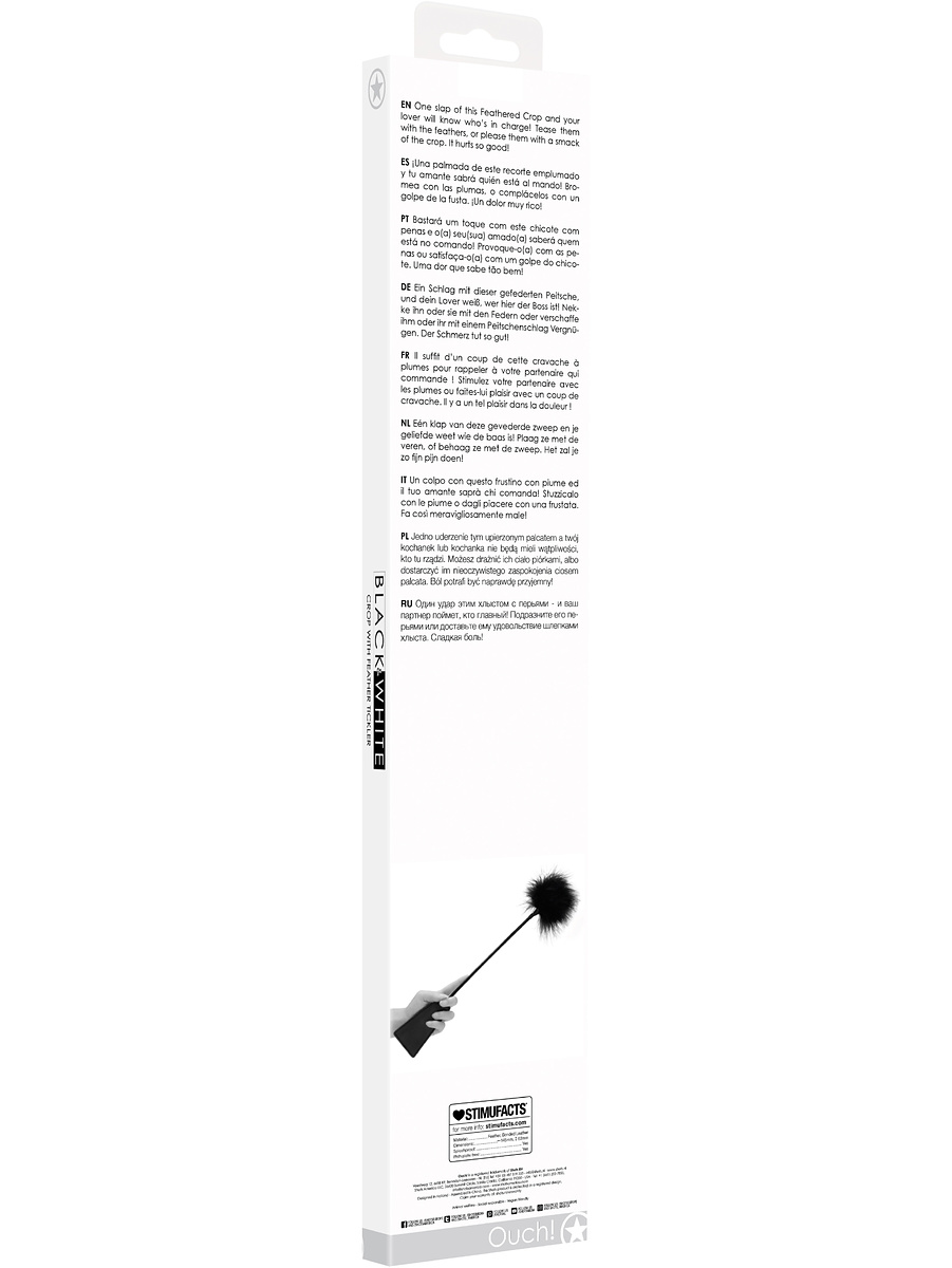 The Crop with Feather Tickler is a perfect addition to foreplay or your BDSM-play. Feel free to combine it with a blindfold to intensify the experience.