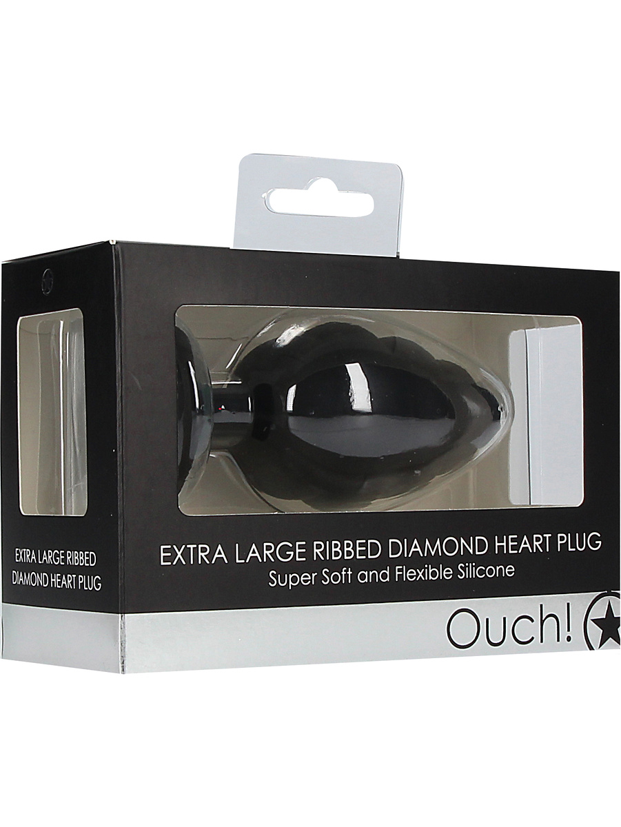 Ouch! Extra Large Ribbed Diamond Heart Plug, black