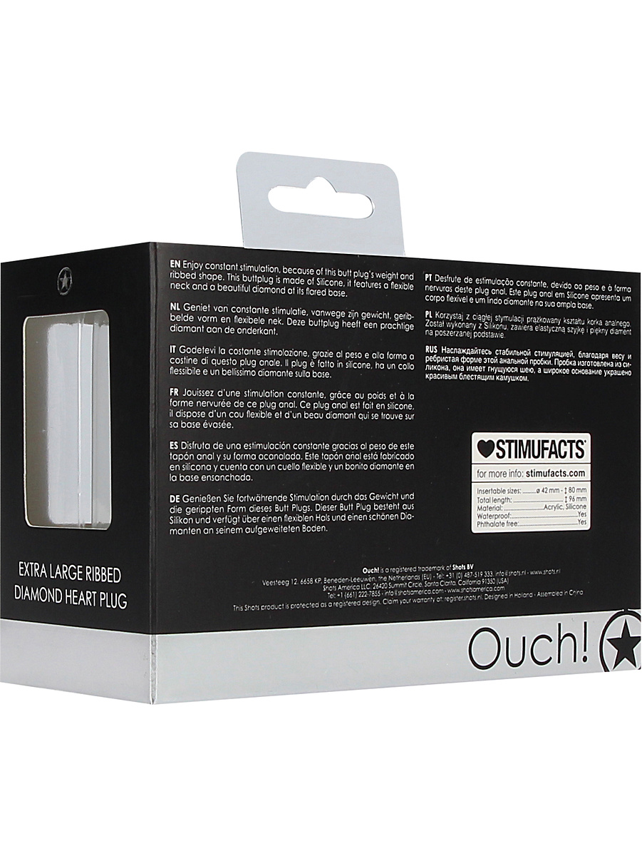 Extra Large Ribbed Diamond Heart Butt Plug - Classic ribbed design & heart shaped diamond base!