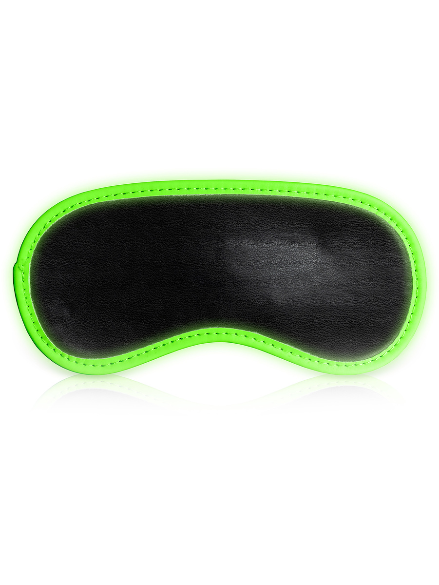The blindfold is made of PU-leather with a green edge that glows in the dark. It also has a wide, stretchy head strap that provides a perfect fit both during play.