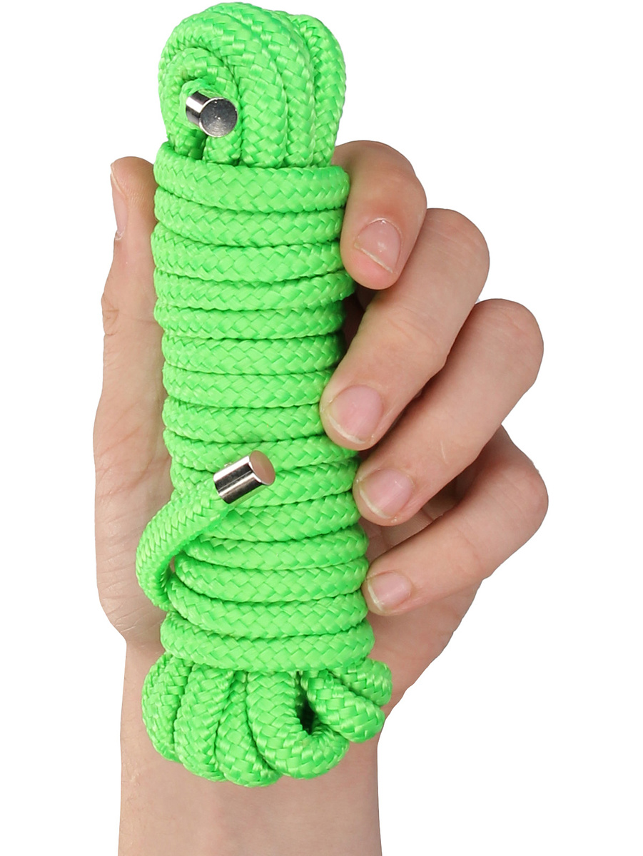 Experience captivating play with the help of a five meter long rope that you can use to limit your partner's mobility for a while. The green rope also has luminous properties for extra playfulness in the dark.