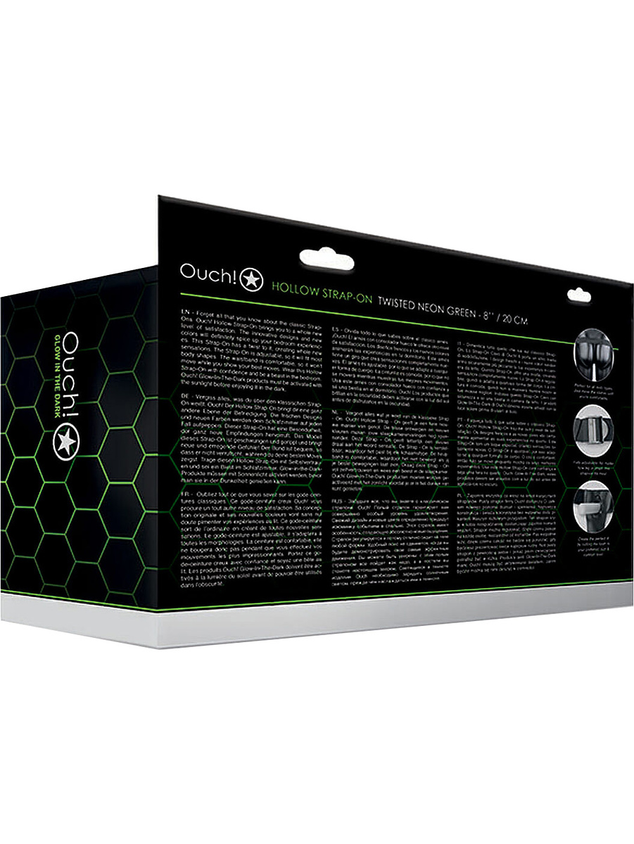 Ouch! Glow in the Dark Textured Curved Hollow Strap-On, 20 cm