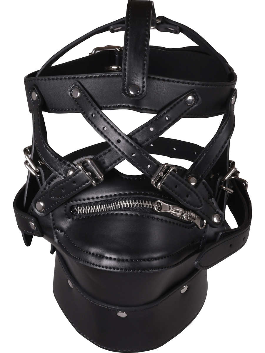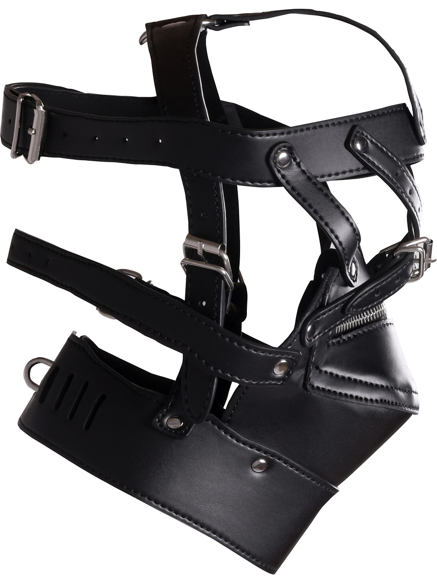 Get ready to keep your sub's mouth shut and quiet with this PU leather head harness. A zipper goes over the mouth and around the neck you lock the head harness with a padlock (not included) to leave no room for disobedience.