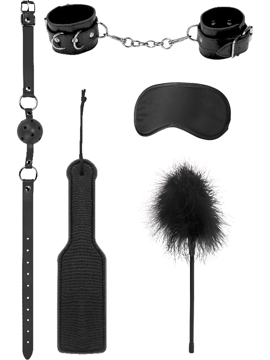 Introductory Bondage Kit #4 - Beginner kit with handcuffs, blindfold, paddle, spring and gag ball!
