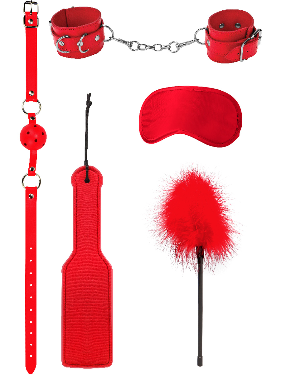 Introductory Bondage Kit #4 - Beginner-kit with handcuffs, blindfold, paddle, spring and gag ball!