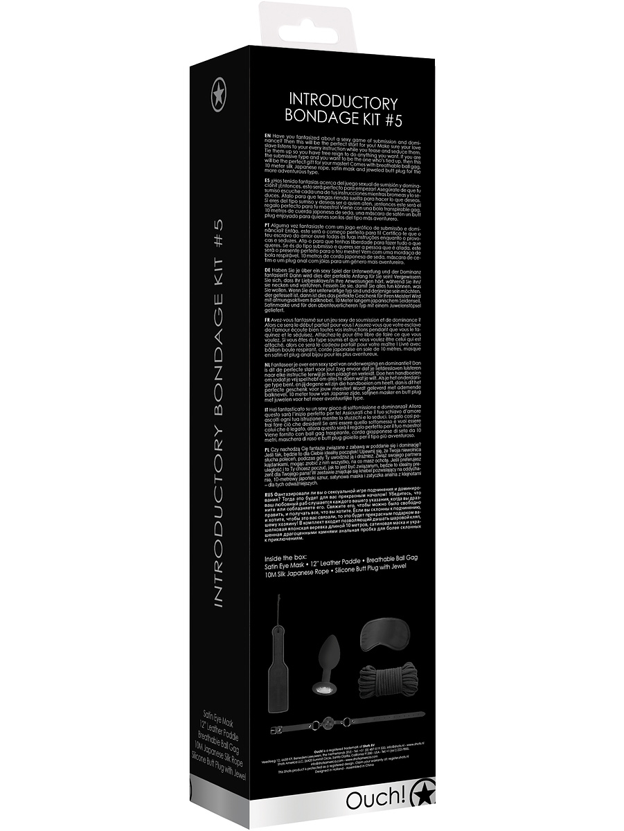 Introductory Bondage Kit #5 - Beginner-kit with blindfold, paddle, gag ball, rope and butt plug!
