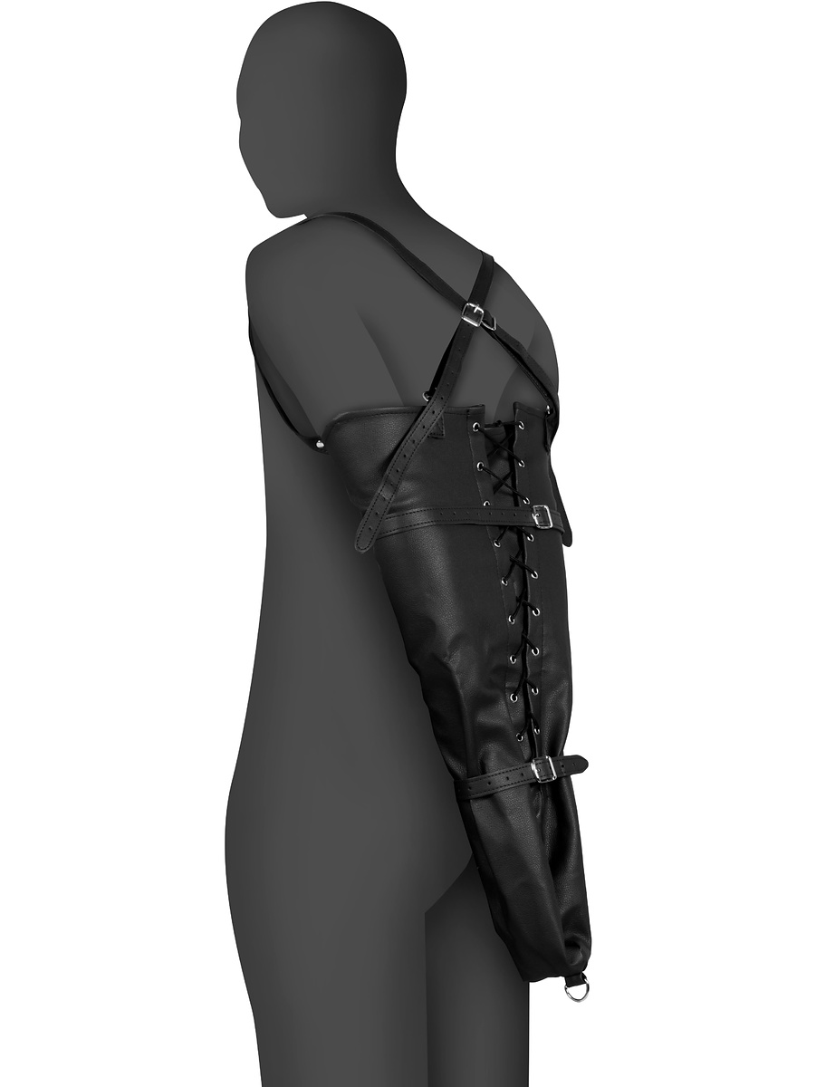 Imprison your sub's arms securely behind the back with this PU-leather arm sleeve. Perfect for ramping up the tension and rendering your slave completely helpless to your every desire.