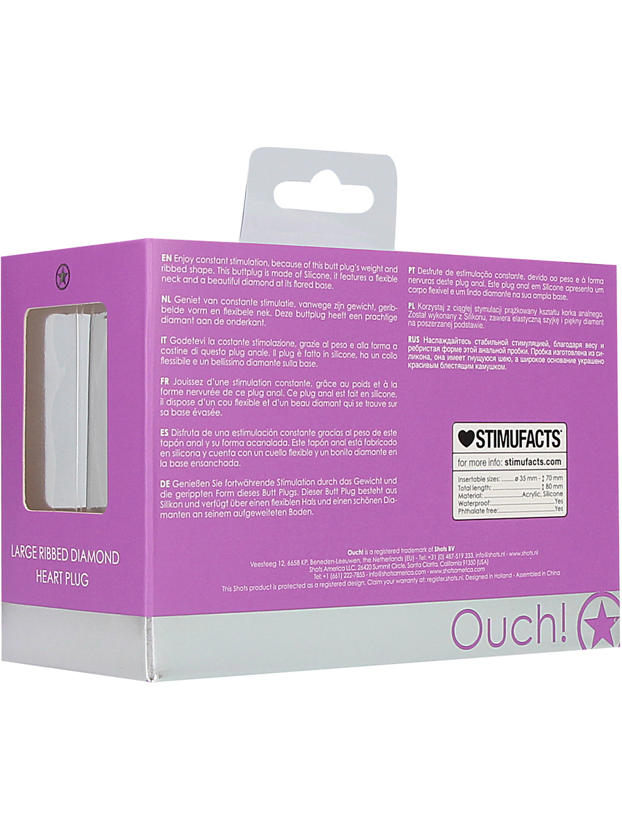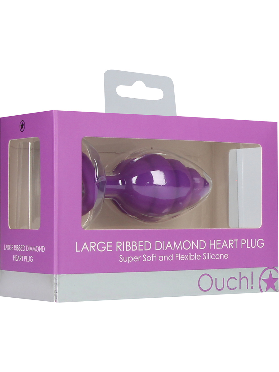 Ouch! Large Ribbed Diamond Heart Plug, purple