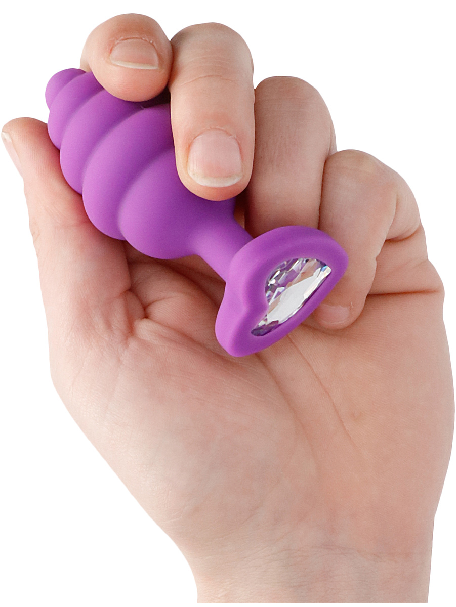 Large Ribbed Diamond Heart Butt Plug - Classic design with grooves & heart-shaped diamond-base!