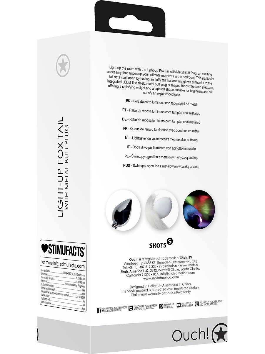 Ouch! Light-up Fox Tail with Metal Butt Plug, white