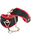 These ankle cuffs are made from durable PU-leather in red and black, creating both comfort and a powerful expression. Adjustable straps ensure a comfortable fit around the ankles, while gold-colored metal details – from chain to buckles – add luxury and pomp to any game.