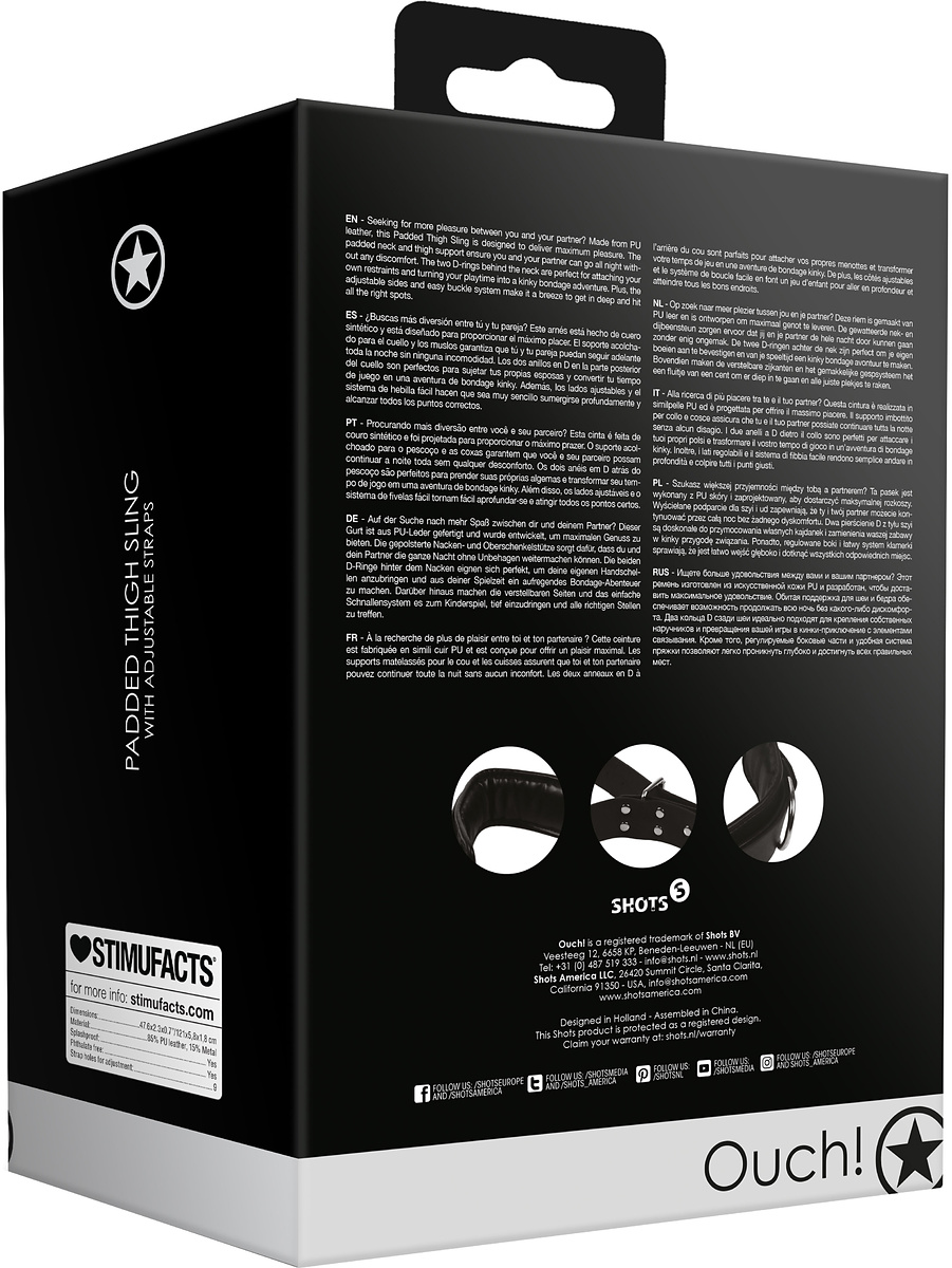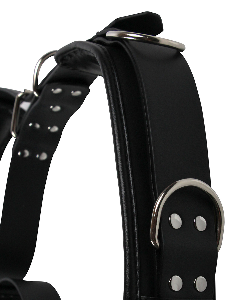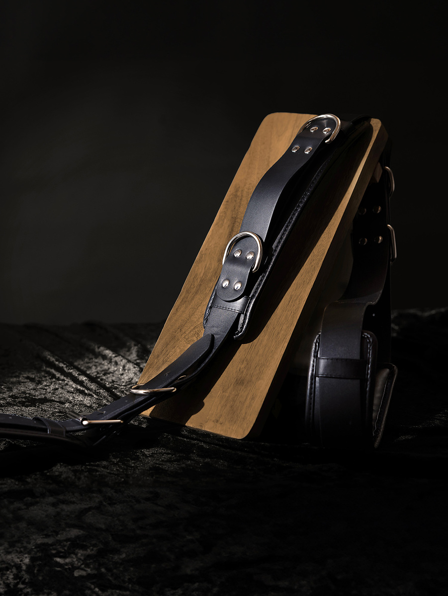This is a padded PU-leather thigh harness, designed to provide maximum comfort and enjoyment during partner-play. The padded neck and thigh support ensures that you and your partner can enjoy for a long time without uncomfortable positions.