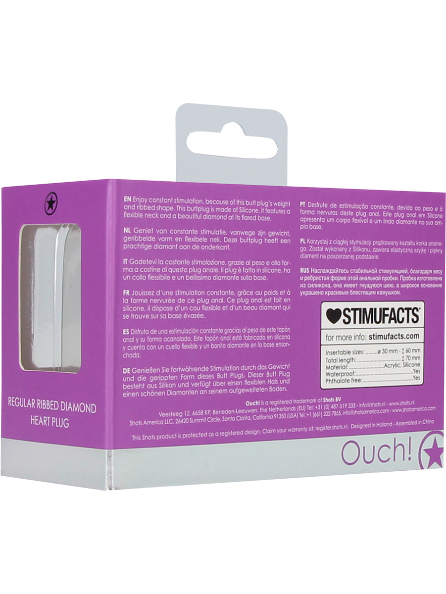 Ouch! Regular Ribbed Diamond Heart Plug, purple