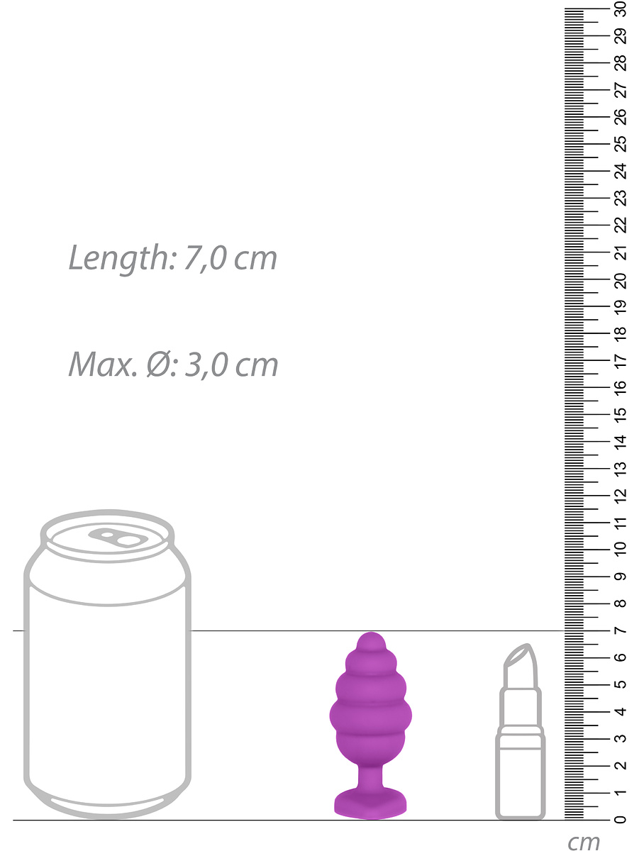 This is a silky-smooth silicone butt plug with a classic shape and soft grooves that provide extra stimulation. The tapered top provides a comfortable entry while the narrow and flexible neck ensures that it sits comfortably in place.