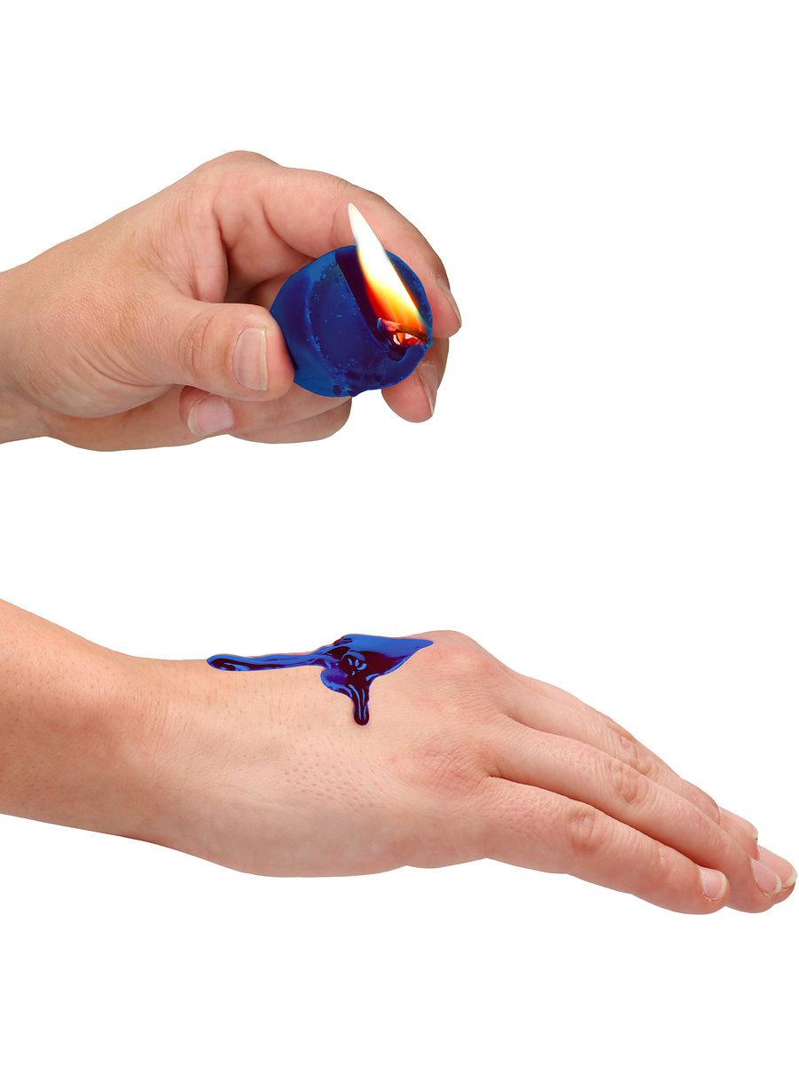 Light the candle and let the hot wax gently drip onto the body. Do not hold the candle too close to the body when dripping the wax. Never drip into the navel, intimate areas, openings, buttocks or skin folds.