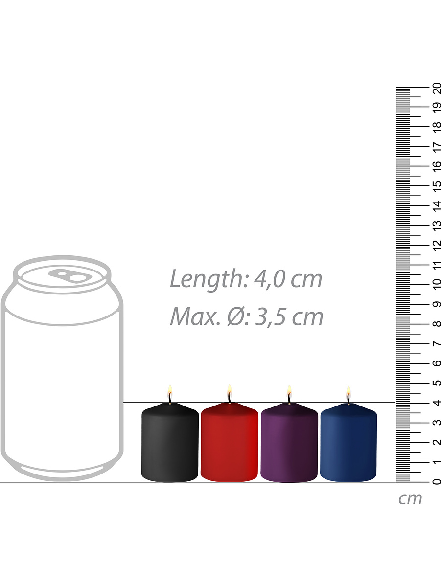 This set contains four wax-candles in different colors that you can use for exciting SM-play together. All the candles have unique and lovely scents.