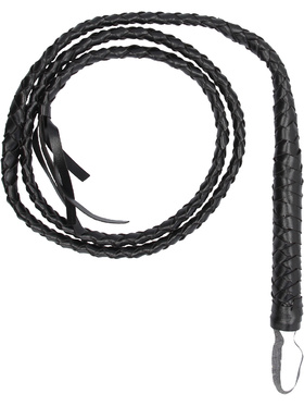 The whip features a thick, sturdy handle at the base, giving you a stable grip and full control over every motion. The narrower, braided shaft ends in multiple loose leather tails – perfect for teasing strokes or sharp lashes. The balance of weight and design makes it an excellent tool for both gentle play and more intense sessions.