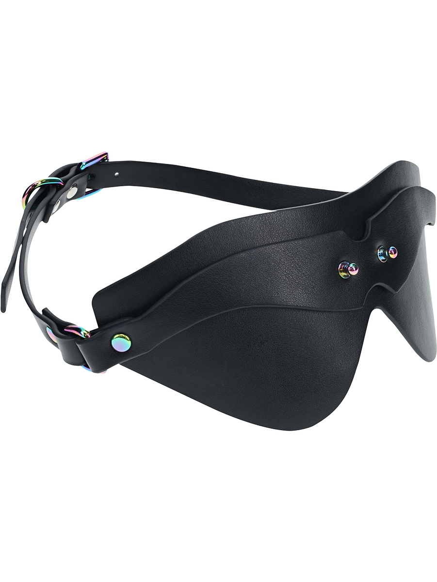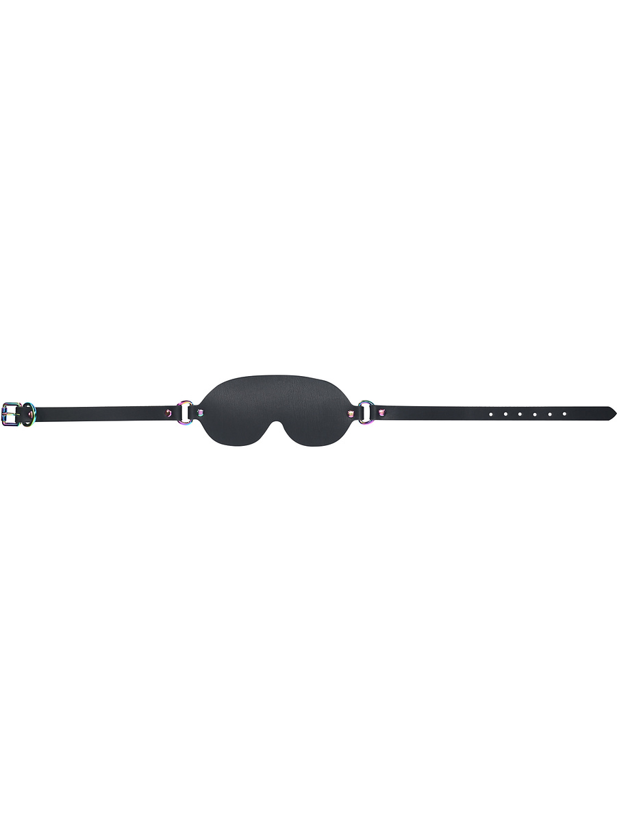 Made from premium PU-leather with a matte black finish, this blindfold sits comfortably and softly against the skin. The anatomical shape completely covers the eyes, while an adjustable strap around the head ensures optimal fit and comfort. Shimmering metal-details give a sophisticated and stylish look.