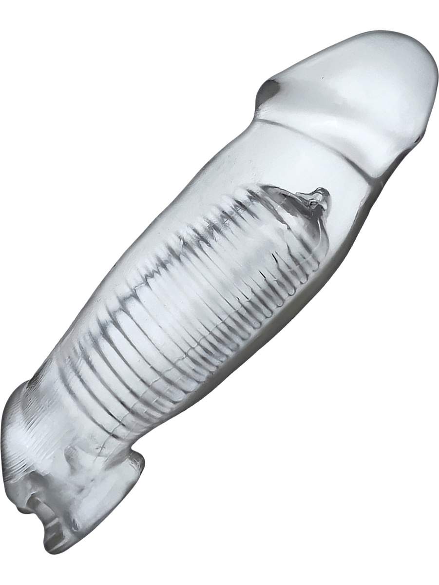 The thick and rubbery flexTPR-material hugs your penis and adds 3-5x more girth and a whopping 9cm in length (12cm in length if using the insert). It is really big.