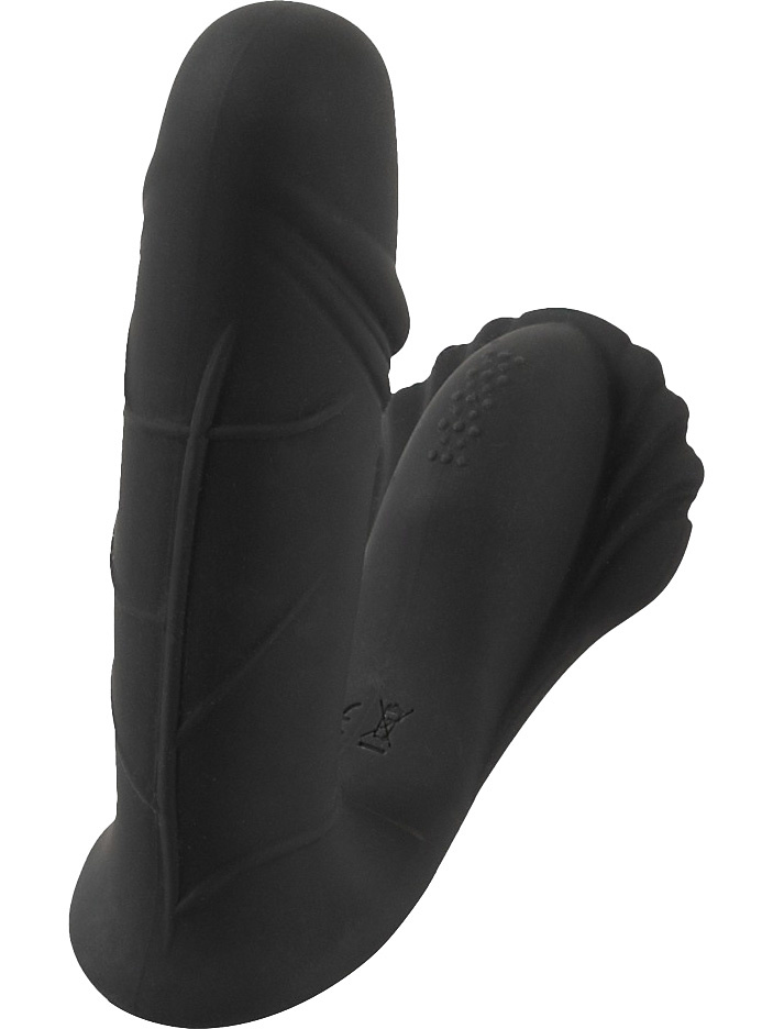 This is an exclusive panty-vibrator with a vibrating shaft in the shape of a penis and a vibrating clitoris stimulator with wings and stimulating knobs.