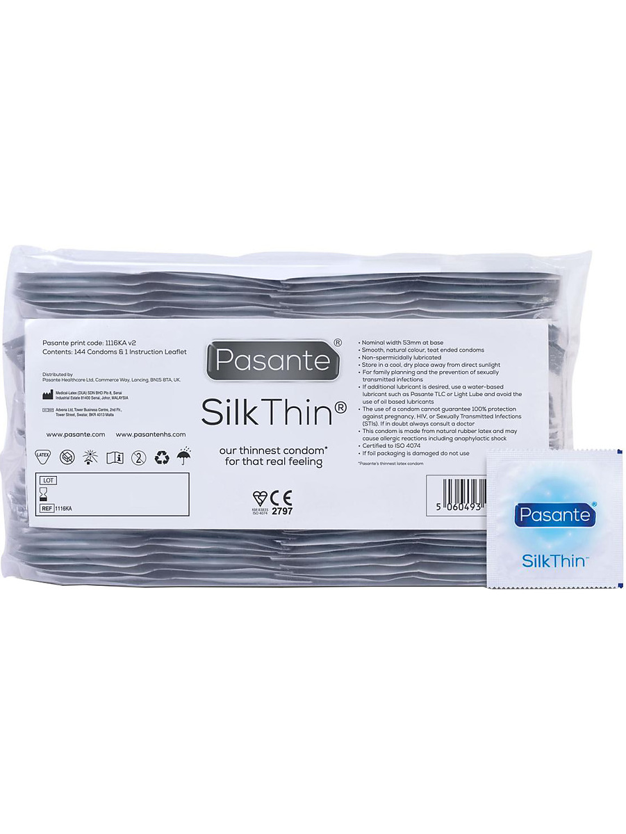 Silk Thin is Pasante's absolute thinnest condom, half as thick as their standard condoms. It is only 0.04 mm thick, which means that the feeling is natural and extremely comfortable, almost like being without it.