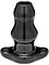The plug is available in transparent and black and in sizes M, L and XL. This black plug is of size XL which is the most extreme size.