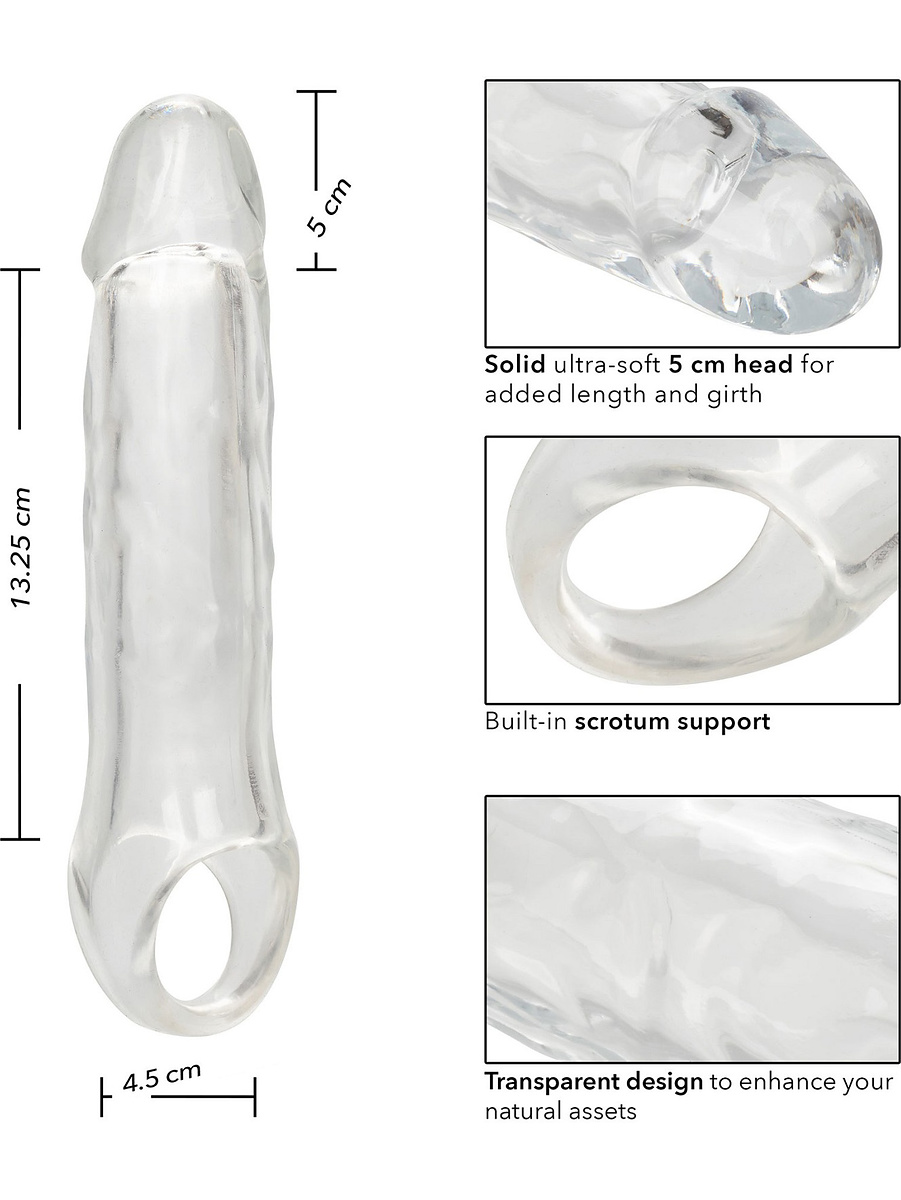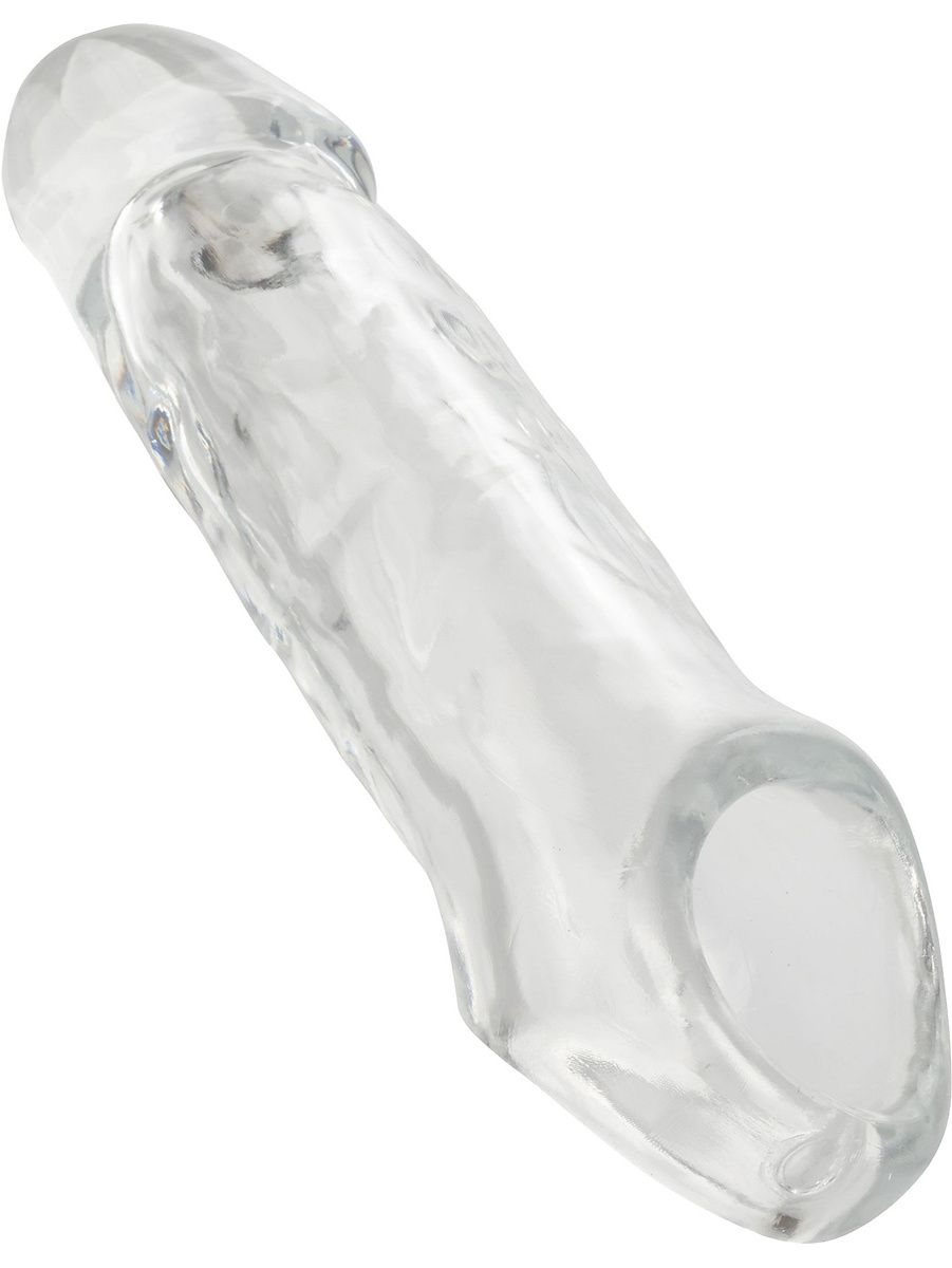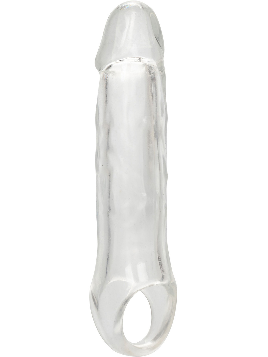 The penis extender gives a real feel with its marked glans and pulsating veins, while the transparent design is visually stimulating. The stretchy and comfortable TPE-material makes it easy to put on and comfortable to use. Of course, the material is bodysafe, phthalate-free and odor-free.