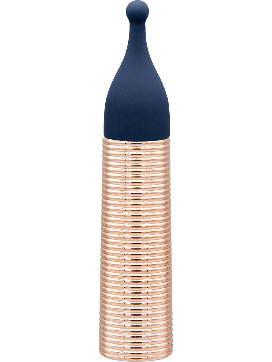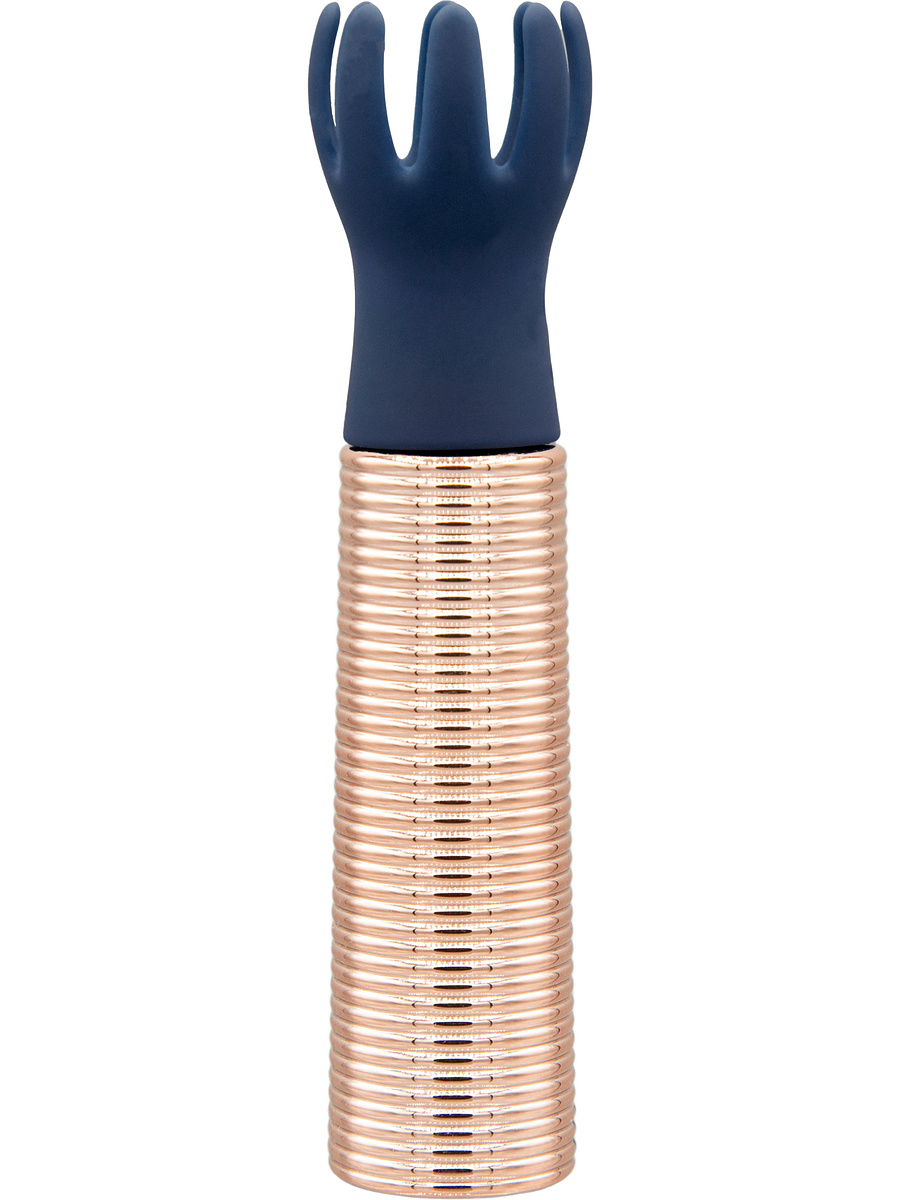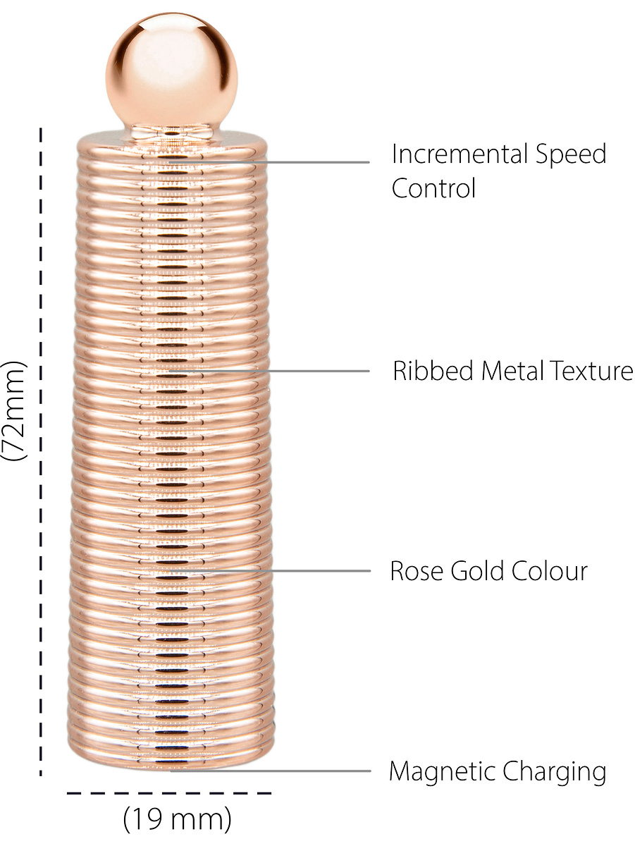 You can easily charge the toy via the magnetic USB-cable. 1.5 hours of charging gives up to 2.5 hours of enjoyment. It also comes with a small cleaning brush to keep the rosegold base shiny.