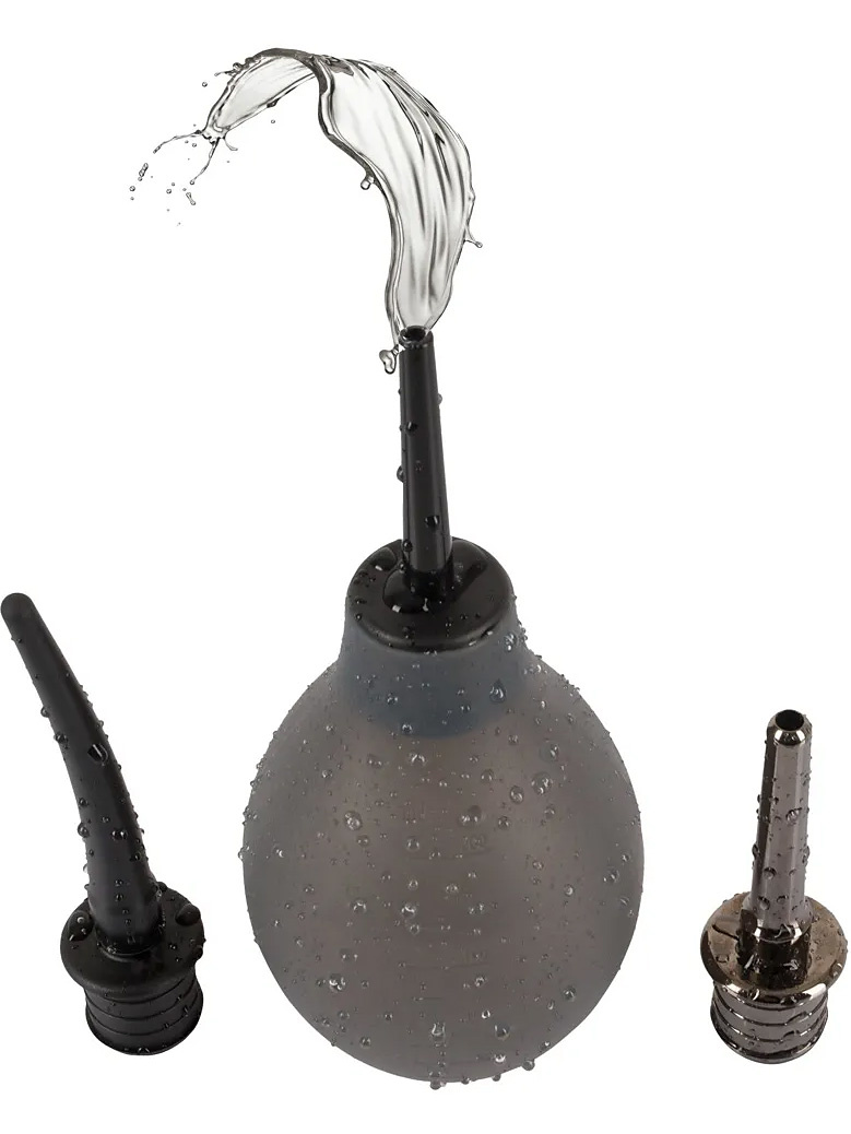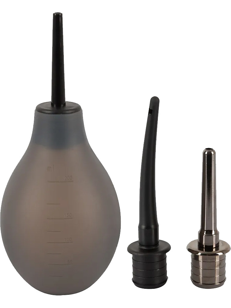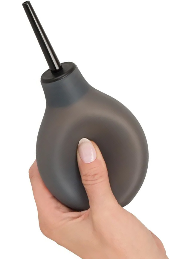 The soft silicone pump-ball has a practical measuring scale and is filled with water (max. 200 ml) before attaching the desired nozzle. Apply water-based lube before bringing the shaft up anally. Squeeze the container to clean and let the water drain. When the water is clean and clear, you are ready for anal adventures.