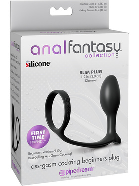 With the Ass-Gasm Cockring Beginners Plug you get the opportunity to enjoy your most explosive ejaculations ever. With both butt plug and cockring, you have the opportunity to experience sex in a completely new way. The performance-enhancing cockring gives you a stronger erection and prolongs your ejaculation, while the plug gives you incredible prostate stimulation.