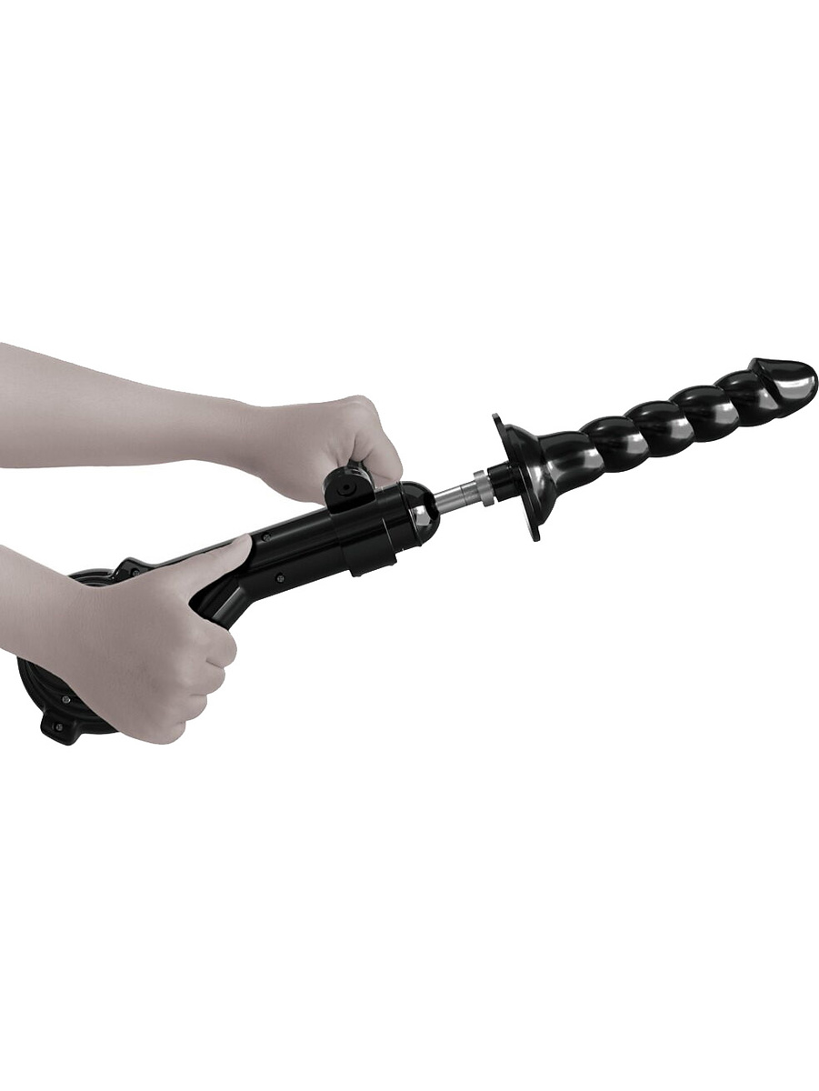 The included dildo has a suction cup that effectively attaches to the patented Push & Play docking plate (Ø 8.9 cm). This allows the grooved dildo to be quickly and easily attached to the penetration-arm of the sex machine. Best of all, it works with most suction cup toys (dildos, vibrators and masturbators) on the market, including some you may already own!