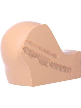 This is a plump realistic butt in smaller size that is made from the super-soft and true-to-life material Fanta Flesh. Take it from behind and slap the delicious cheeks. You choose whether you want to penetrate it vaginally or anal. The texturing tunnels will stimulate you comfortably with every penetration. Use plenty of water-based lubricant with this masturbator to optimize the feeling.