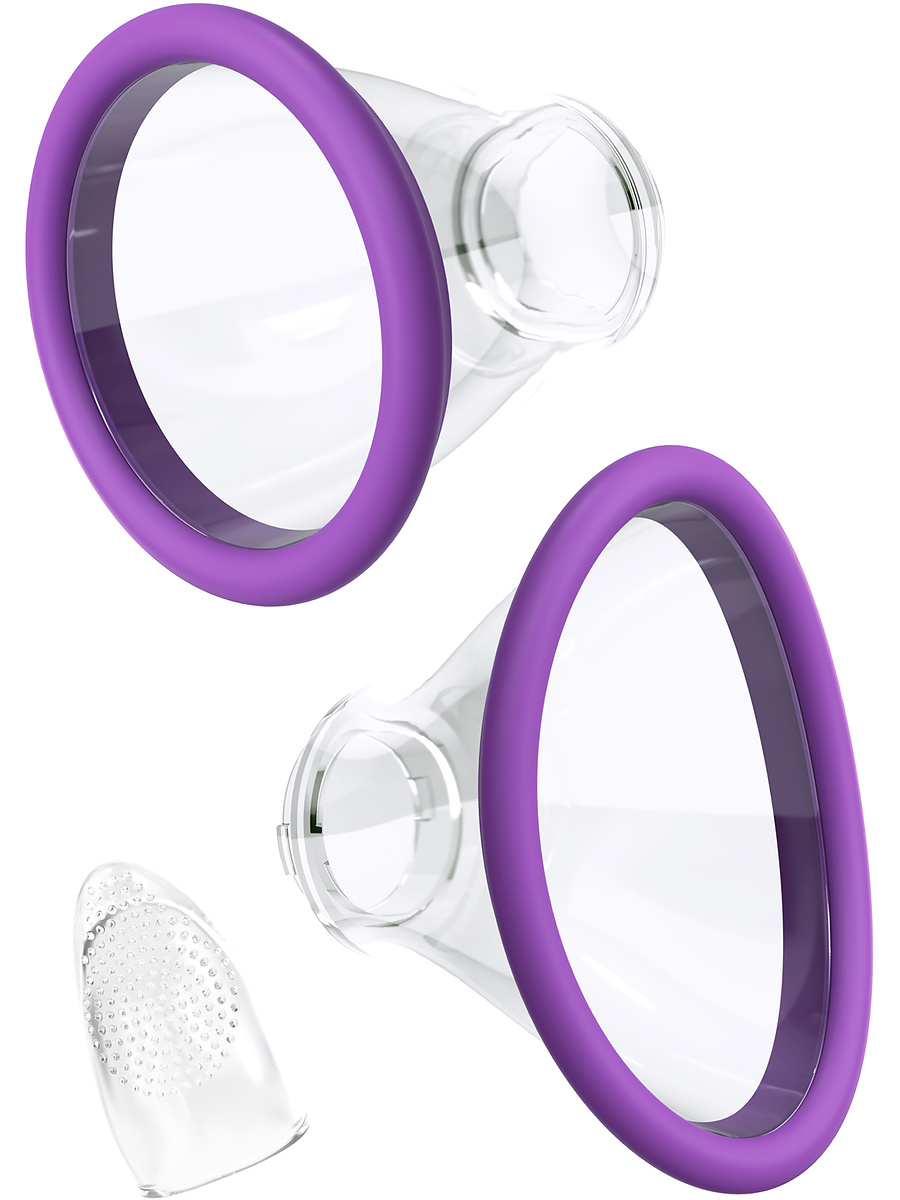 If you also want to enjoy a sucking sensations, two different covers are also included, which you place over the clitoris and labia. One has a round opening (inner diameter 5 cm) while the other is oval (7 x 4,5 cm) so that you can adapt your experience to your erogenous areas. The edges are surrounded by silicone to give a comfortable feeling.
