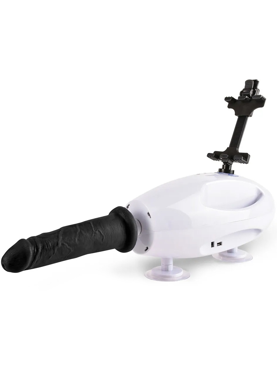 The sex machine has a compact and user-friendly design that provides great versatility. With two suction cups, you can attach it to a flat surface for enjoyment handsfree. You can also remove the suction cups and grab the handles on the sides to use it as a hand-held sex machine.